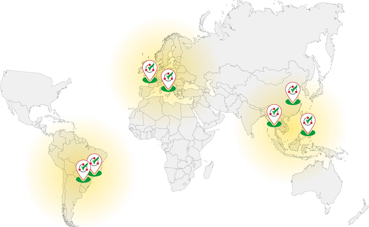 Com forte presença na América do Sul, Europa e Ásia, estamos comprometidos em desenvolver tecnologias que atendam às especificidades e padrões dos mercados em que atuamos, assegurando resultados de alto desempenho e contribuindo para o crescimento sustentável de nossos parceiros e clientes.